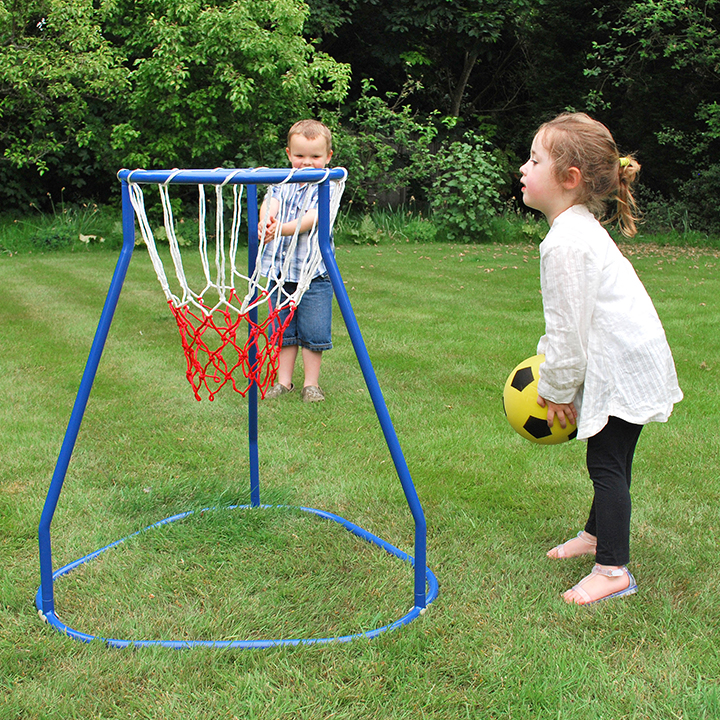Provides a challenge and reachable goal. Weather proofed so can be used inside and out. Simple self assembly required. Age guide 3+