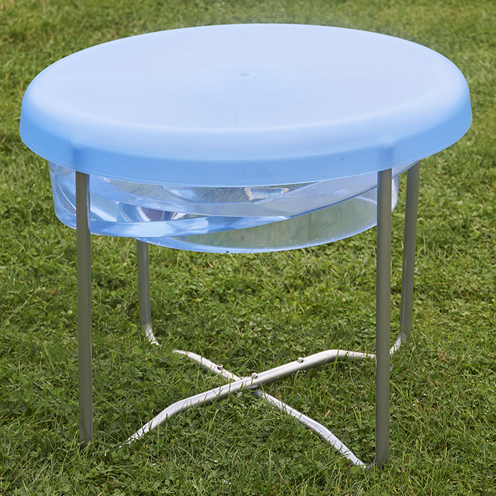 Made from tough clear plastic with powder coated tubular steel frame. Includes a drainage valve and plastic lid. Can be used indoors or out.