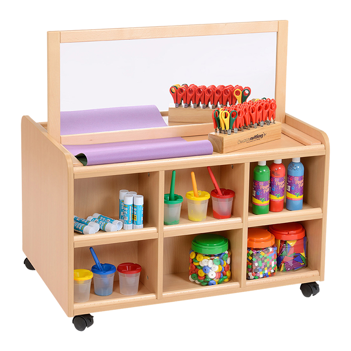 Versatile unit with 6 plastic bins one side and storage space on the other. The top section is a simple double sided mirror which can be used separately... View more