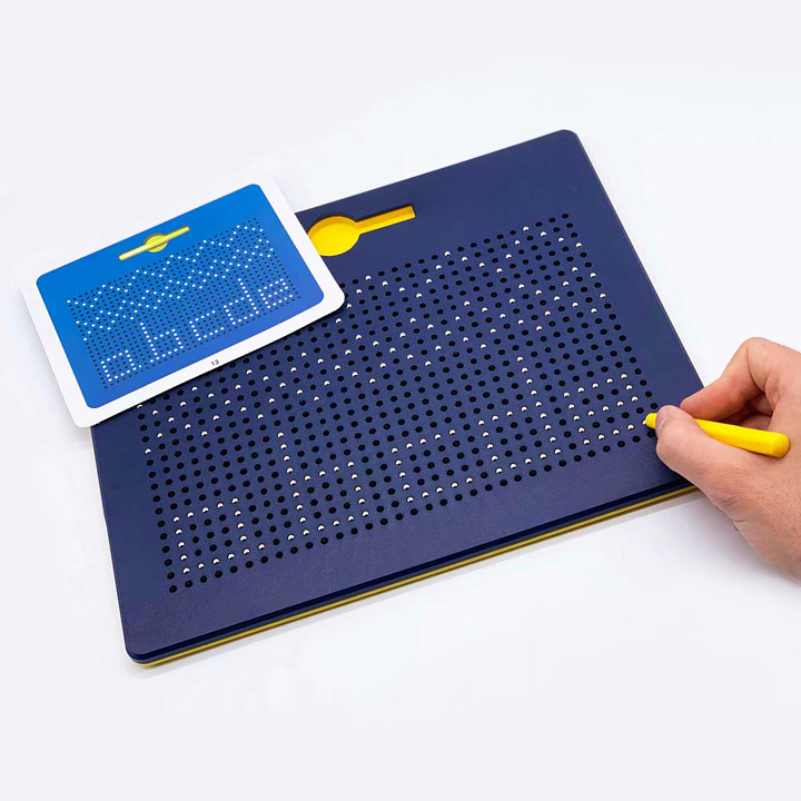 The metal balls are safely housed with the grid of the pad, ensuring the balls do not fall out. The hexagonal applicator supplied with the board includes a nickel-coated, sprung loaded, strong neodymium magnet.