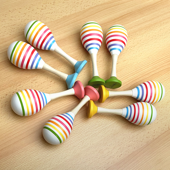 4 pairs of coloured wooden maracas, learn about percussion, rhythm and beat. Decorated with bright rainbow stripes... View more