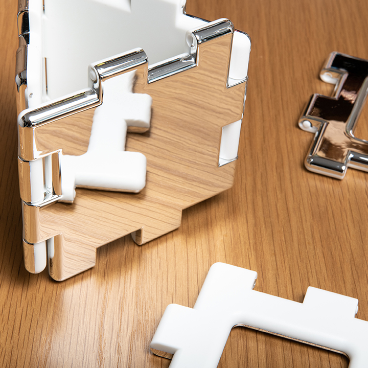 Includes 16 pieces: 4 squares, 4 frame squares, 4 triangles and 4 frame triangles